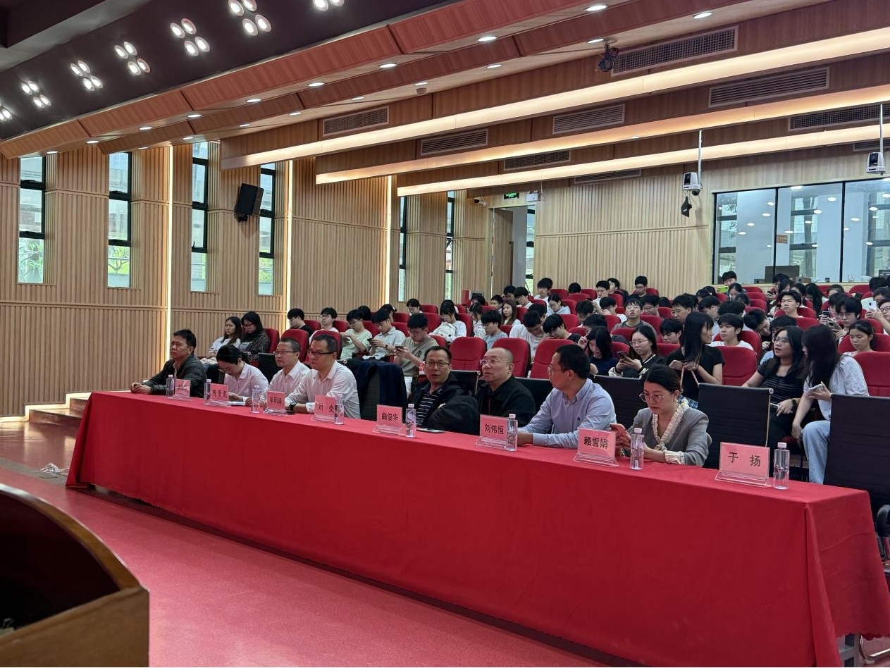 为深入学习贯彻党的二十届四中全会精神,扎实推进人才培养和大学生职业生涯规划,2025年11月7日,金融数学与统计学院联合国金期货、国投证券、光大银行等金融机构,举办第20期敏学讲堂暨投资教育服务与人才发展交流会。活动邀请了国金期货广东分公司副总经理刘伟恒,国投证券广州分公司沙太路营业部总经理毕明涛、金牌投资顾问于扬,光大银行校场西路支行行长助理赖雪娟、洪玉萍等行业专家,为学院逾百名师生带来了一场金融实务前沿分享。学院党委书记曲俊华、院长刘炎教授、副书记孙海慧、副院长陈员龙教授、辅导员黄河、周子惠、班主任吴小英等教师出席,活动由陈员龙主持。