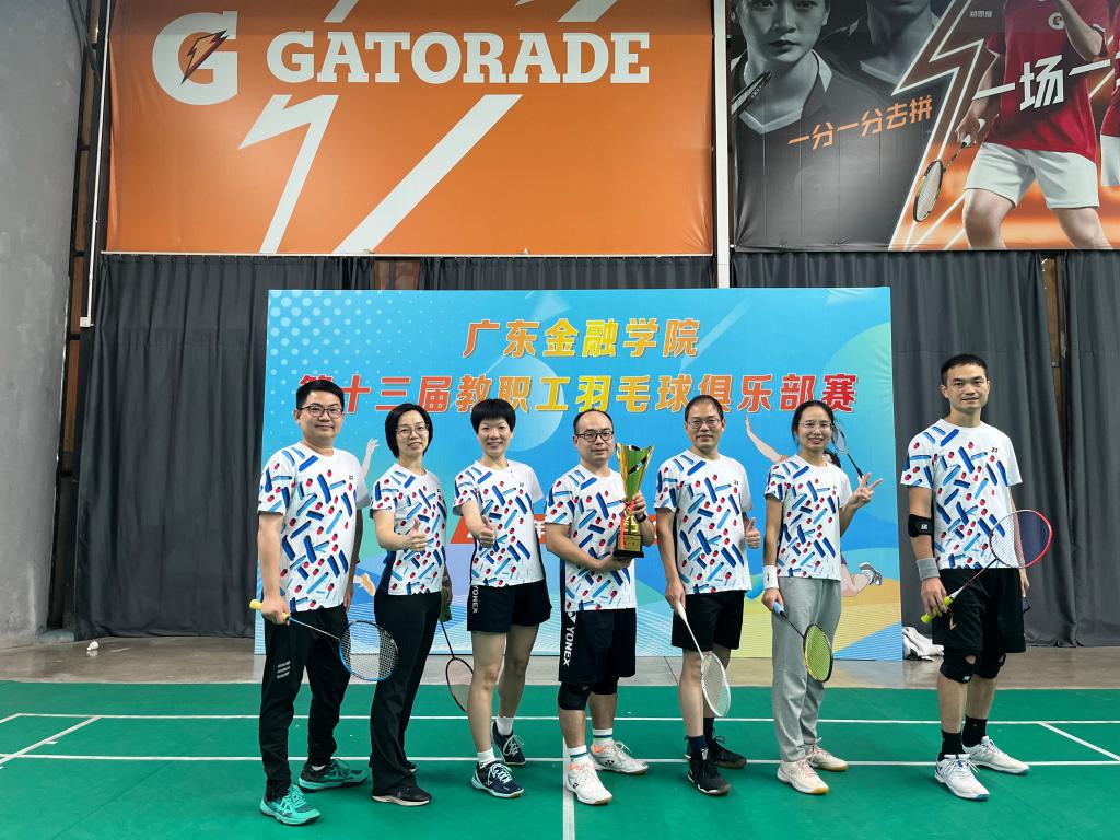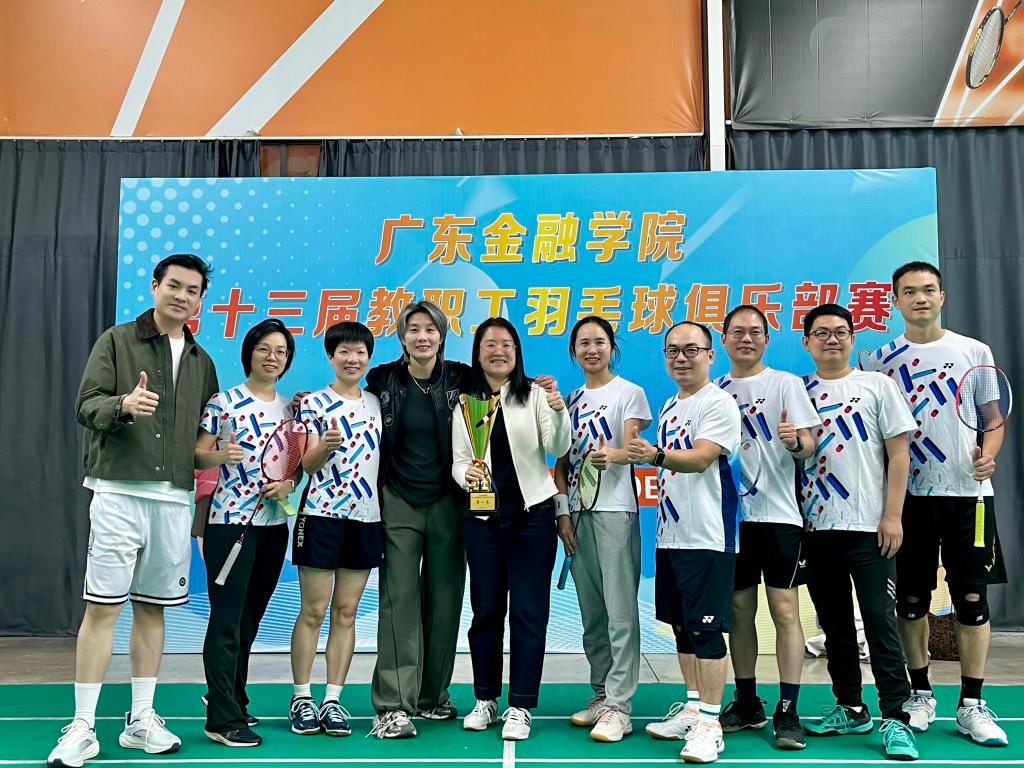 11月19日至20日,广东金融学院第十三届教职工羽毛球俱乐部比赛在德荣体育馆正式开赛。经过两天的努力拼搏,金融数学与统计学院教工羽毛球队在领队何忠华副院长的带领下,奋勇拼搏、不畏艰难,蝉联学校教职工羽毛球俱乐部比赛冠军!