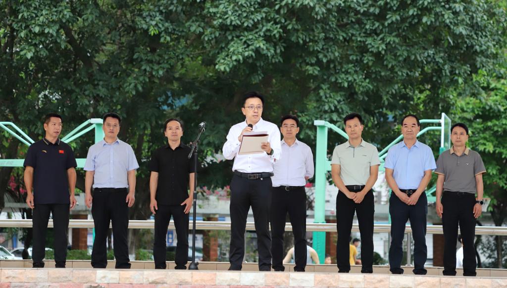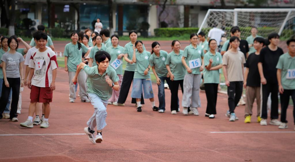 易行健校长作了动员讲话,他指出,体育运动是立德树人的重要载体,国家实施学生体质强健计划,是要让“健康第一”理念扎根校园,让广大学子在体育运动中享受乐趣、增强体质、健全人格、锤炼意志。我校组织开展的学生体质强健行动系列活动是认真贯彻教育部等五部门《关于实施学生体质强健计划的意见》,深入落实“健康第一”教育理念的一项重要举措。作为广金学子,既要锻造过硬专业本领,更要拥有强健体魄,才能担当时代重任。易行健校长向全校学生发出倡议:一是上好体育课、坚持常锻炼,每天阳光体育运动不少于1小时,每周不少于3 次上强度的运动,养成终身锻炼习惯;二是积极参赛、奋勇拼搏,在学校举办的接力跑比赛中凝聚团队力量,展现广金学子风采;三是以赛促学、以体育心,让体育精神融入学习生活,以饱满状态追逐青春理想。